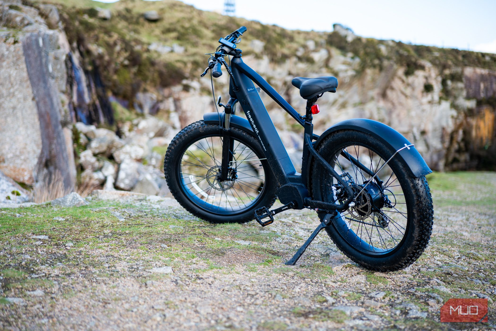 مورفروور بزرگ و پرحجم است — یکی از بزرگترین دوچرخههای الکتریکی که تاکنون بررسی کردهام. با لاستیکهای ۲۶ اینچی ضخیم، برای مسیرهای کوهستانی سخت آماده است و فریم مقاوم دارد. این دوچرخه قطعاً برای افراد کوچک مناسب نیست. من قد ۶’۱ (۱۸۵ سانتیمتر) دارم و هنوز هم احساس میکنم بزرگ است.