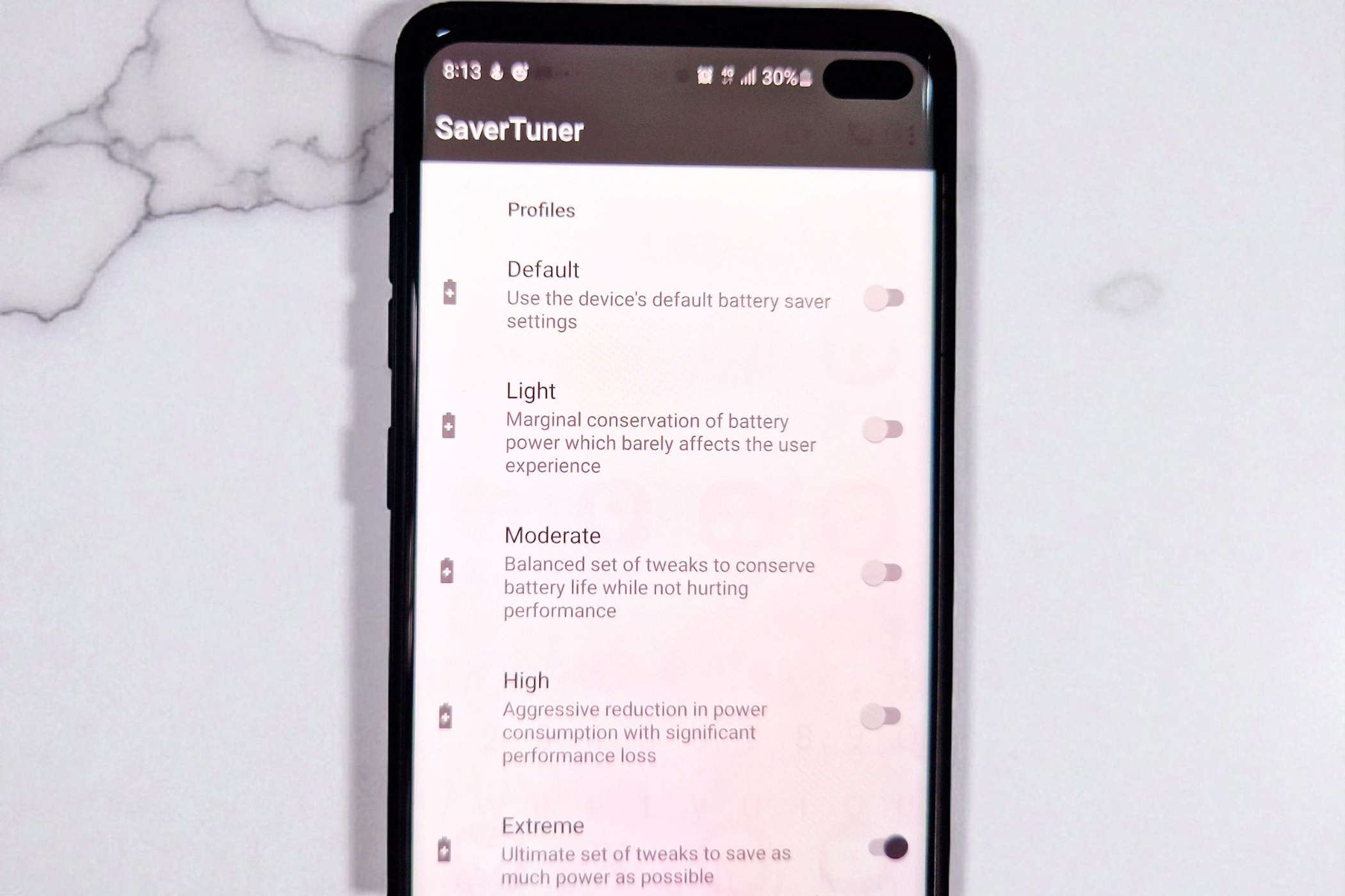 در اینجا است که SaverTuner واقعاً می‌درخشد. برنامه به شما اجازه می‌دهد تا پروفایل‌های مختلف صرفه‌جویی باتری را ایجاد و بین آن‌ها جابجا کنید، از بهینه‌سازی روزانه سبک (که به‌طور جزئی تجربه کاربری را تحت تأثیر قرار می‌دهد) تا صرفه‌جویی شدید انرژی که طول عمر باتری را تا حد امکان حداکثر می‌کند. هر پروفایل توضیح واضحی از تغییرات اعمال‌شده دارد، بنابراین همیشه می‌دانید چه انتظاری داشته باشید. و گاهی یک تنظیم می‌تواند عمر باتری تلفن شما را به‌طرزی چشمگیری افزایش دهد.