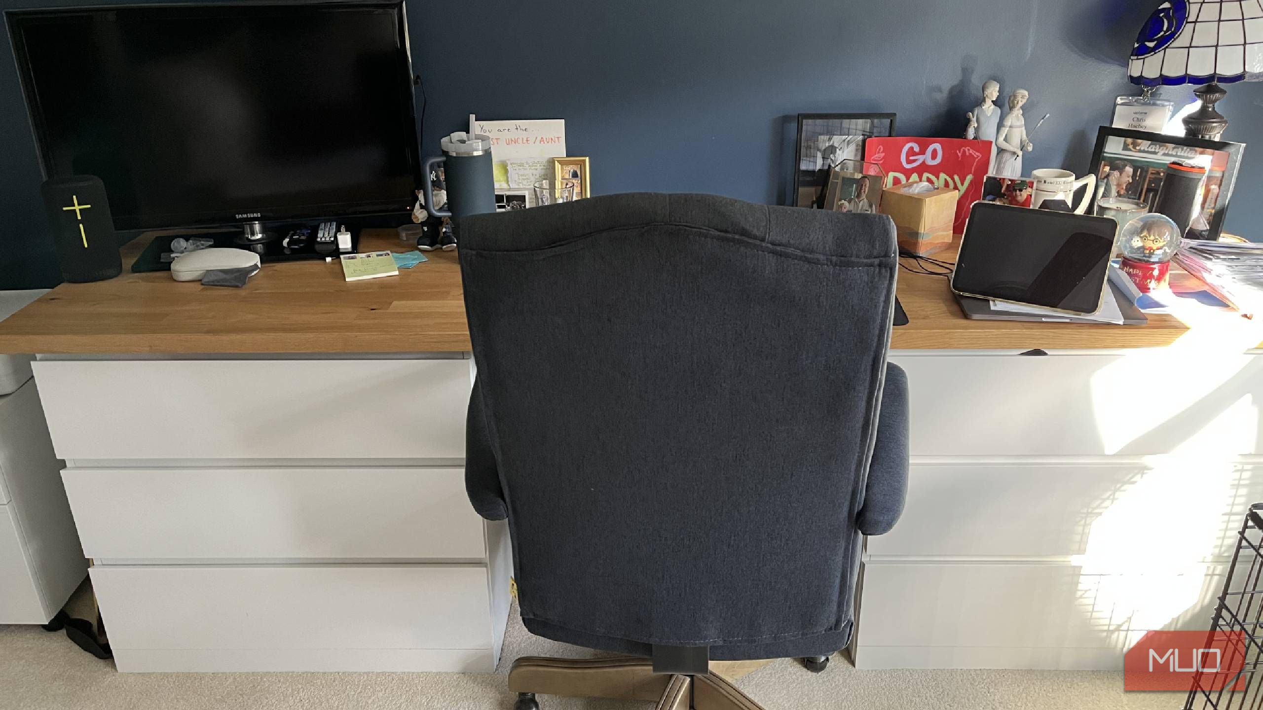 یک Roku Streaming Stick به آن اضافه کردم تا تلویزیون هوشمند شود و میتوانم وقتی در حالت نوشتن شدید نیستم، تلویزیون را تماشا کنم. این به من کمک میکند تا از اخبار یا فیلمی در پسزمینه برای ایجاد صدا مطلع شوم. من عاشق تماشای ورزشها در تلویزیون دفترم هستم و میتوانم از سرویسهای پخش متعدد بهرهمند شوم، بهدلیل تنظیمات Roku.