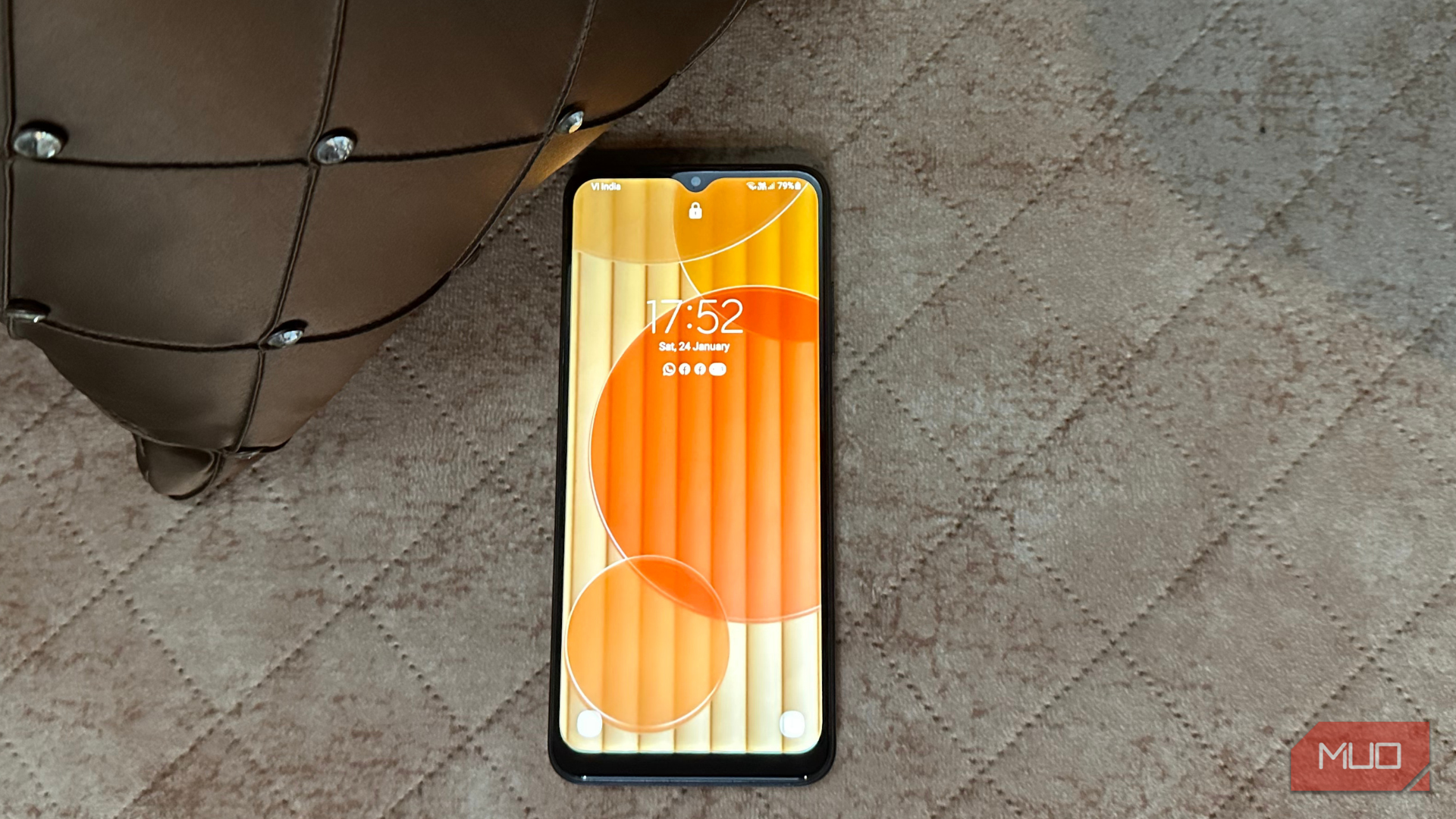 گوشی‌هوشمندی با نمایش همیشه روشن که روی میز قرار دارد.