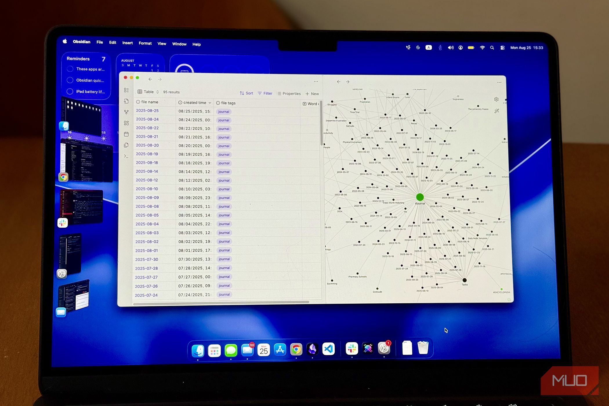 بنابراین تصمیم گرفتم آن را آزمایش کنم. من هزاران فایل ندارم، اما تعداد معینی دارم. یک پایه از تمام این فایلها ایجاد کردم و مطابق وعده، مرور آنها بهراحتی انجام شد. هیچ تاخیری یا لگویی که Notion ممکن است با تعداد برابر فایل داشته باشد احساس نکردم، بهویژه هنگام فیلتر یا مرتبسازی نماها. پایگاهدادههای Obsidian میتوانند اینقدر سریع باشند چون همه چیز بهصورت محلی ذخیره میشود، که مزیتی بزرگ است. و این تست ساده همان دلیلی بود که من را جذب کرد.